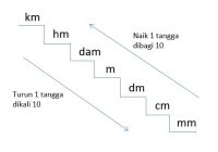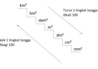 Tahukah kamu apa hasil perkalian luas dan tinggi? Tentu saja, hasilnya volume! Biasanya volume didapat dari hasil perkalian luas (misal meter persegi) dengan tinggi atau satuan panjang (misal meter) sehingga menjadi meter kubik (m3). Tangga satuan volume ditandai dengan pangkat tiga seperti pada gambar di bawah: Pada tangga satuan di atas, setiap kenaikan anak tangga,… Read More »