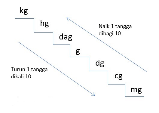 Seperti pada tangga satuan lainnya pada satuan berat untuk satuan yang posisinya menurun nilai satuan dikalikan dengan 10 per satuan tangga. Sedangkan untuk yang posisinya mengarah ke atas, nilainya dibagi dengan 10 per satuan tangga.