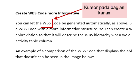Tempatkan kursor pada bagian kanan karakter atau kata yang akan dihapus.