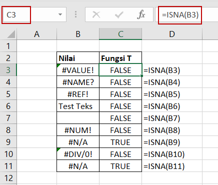 Fungsi ISNA dapat digunakan untuk mendeteksi nilai error #N/A pada sel. Untuk menggunakan fungsi ISNA, caranya: