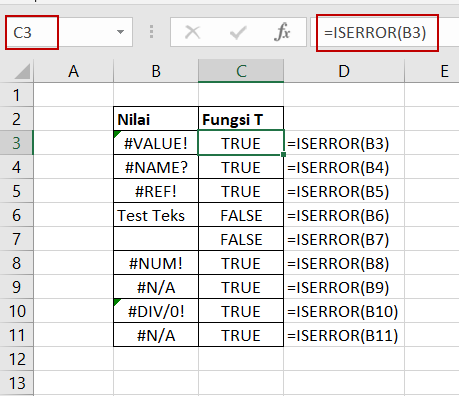 Fungsi ISERROR dapat digunakan untuk mengecek nilai error pada sel. Untuk menggunakan fungsi ISERROR, caranya: