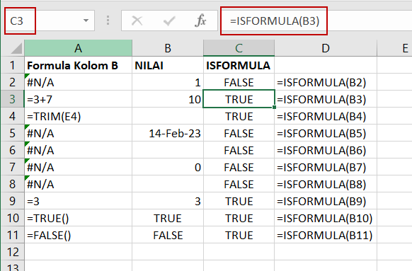 Fungsi ISFORMULA dapat digunakan untuk mengecek apakah suatu sel mengandung formula atau tidak. Untuk menggunakan ISFORMULA, caranya:
