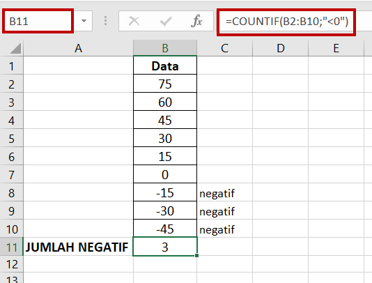 Menghitung sel-sel bernilai negatif,