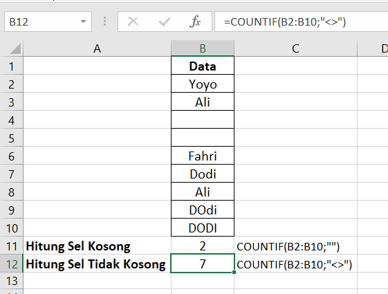 Menggunakan Fungsi COUNTIF
