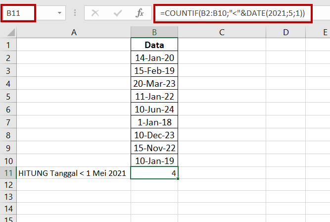 Menghitung sel-sel yang mengandung tanggal lebih kecil dari tanggal tertentu,