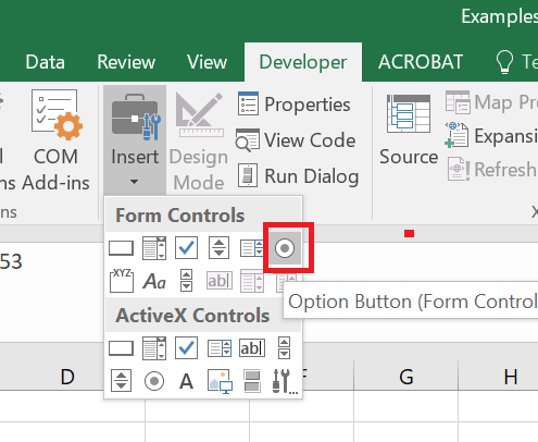 Masukkan Option Button dengan mengakses tab Developer >> Insert >> pilih Option Button.